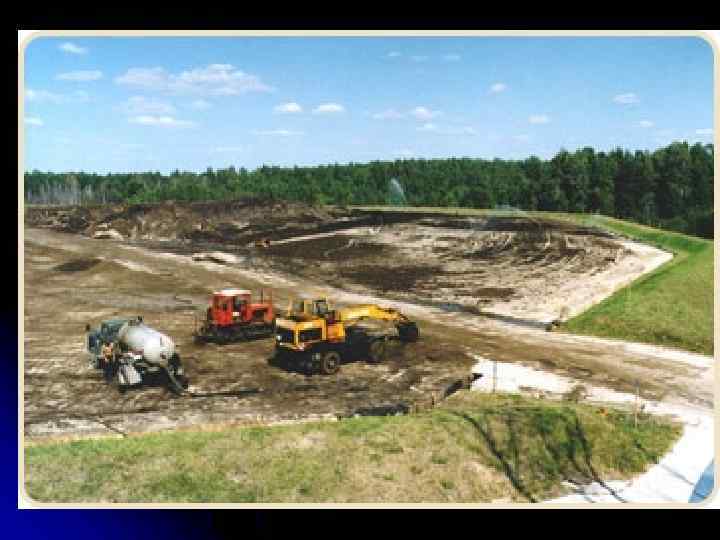 Ø Ø Таким образом, биологическая рекультивация включает: восстановление плодородия нарушенных земель с использованием плугов, культиваторов, рыхлителей, катков, машин для внесения удобрений и т. д. посев трав и посадку первичных культур с использованием сеялок, ямокопателей, лесопосадочных, уход за насаждениями с использованием поливочных и дождевальных машин; сбор урожая с использованием косилок и комбайнов.