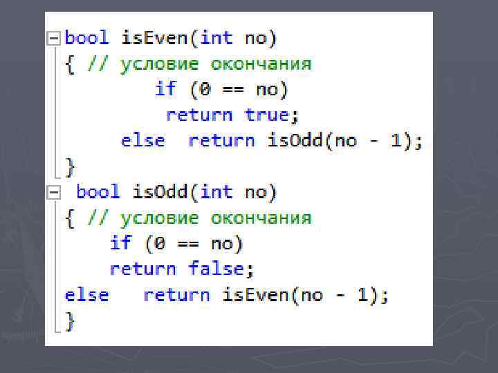 Смешанная ► ( непрямая) рекурсия (две или более) void B() {……A()……} void A() {……B()…. . }
