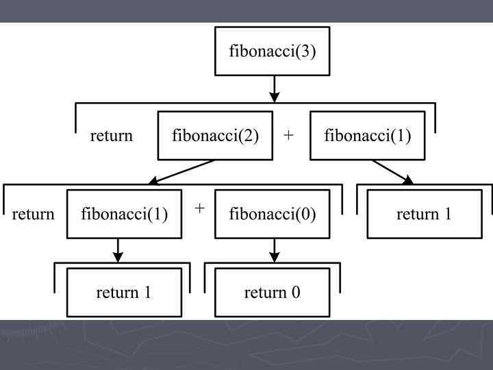 ► Копируются - формальные, фактические параметры, локальные переменные и точка возврата ► Алгоритм (операторы, выражения) рекурсивной функции не меняется, поэтому он присутствует в памяти компьютера в единственном экземпляре
