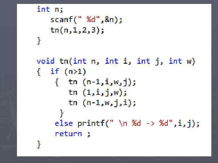 Рекурсия и поисковые задачи Результат рекурсивной функции: ►результат void ►результат логическое выражение (ture, false) ►результат значение -оценка