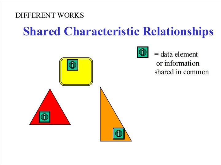 Shared Characteristics Relationships • Different works sharing an element (attribute) in common