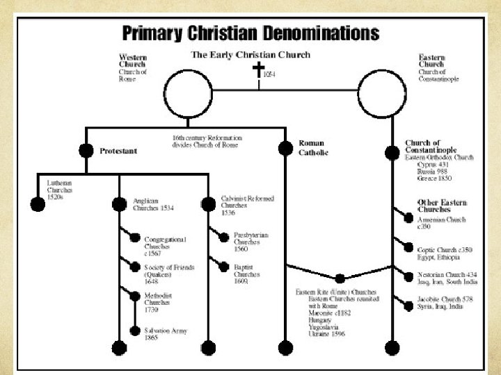 Christianity Largest universalizing religion 2 billion adherents Predominate in: Branches Roman Catholic Europe: SW, East North America South America North America = 40% (NW, SE) Europe Headed by Pope Australia Receive grace from sacraments Eucharist Founder Protestant Jesus of Nazareth Baptist, Lutheran, Methodist, etc. Date: 30 C. E. Europe: Northwest North America= 28% (highly clustered) Origin Reformation- Martin Luther Palestine (Israel) Oct 31, 1517 Individuals could directly communicate with God Eastern Orthodox Doctrine 10 commandments Europe: SE, East Middle East Diffusion Ruled by Patriarchs Initially Relocation- Migration missionaries Expansion Contagious- Roman Empire Split with Roman Catholic teachings after 8 th century C. E.