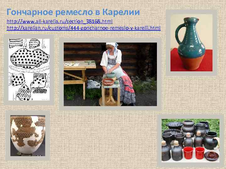 Гончарное ремесло в Карелии http: //www. all-karelia. ru/section_38168. html http: //karelian. ru/customs/444 -goncharnoe-remeslo-v-karelii. html