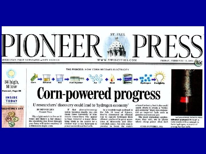 Hydrogen Cluster Programs Seed Grants Micro fuel cells Hydrogen from ethanol Biological hydrogen Solar hydrogen Photolytic hydrogen Hydrogen storage Microbial fuel cells Bill Smyrl Lanny Schmidt Mike Flickinger Jane Davidson Kent Mann Eric Gant Daniel Bond CEMS Biochemistry ME) Chemistry Physics Biochemistry Matching Grants Photosynthetic Bacterial Paints that Produce Hydrogen Mike Flickinger University Renewable Hydrogen and Chemicals from Ethanol Lanny Schmidt Mn Corn Growers Matching Grant Proposals Hydrogen Fueling Station Diesel Reforming in Autothermal Reactors Photolytic Hydrogen …