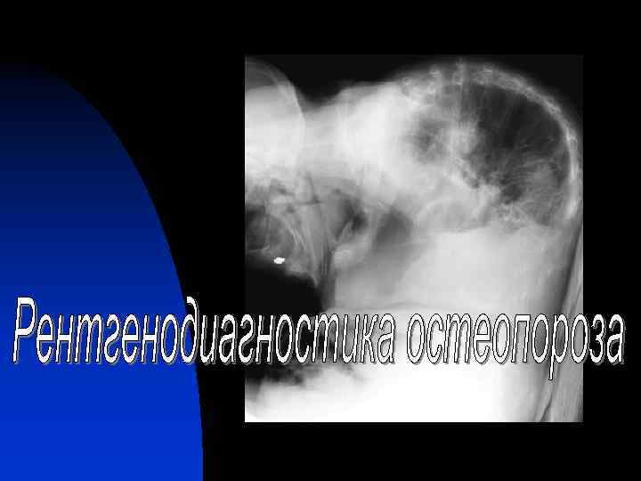 Диагностическое значение позвоночного столба при остеопорозе n n Во-первых, это аксиальная часть скелета, где снижение минеральной плотности костной ткани развивается раньше и выражено в большей степени. Во-вторых, костная структура тел позвонков на 85% имеет губчатое строение. В-третьих, это основной источник клинических проявлений. В- четвертых, имеется комплекс диагностических возможностей для оценки изменений позвоночника. Таким образом, позвоночный столб при остеопорозе является не только важным объектом патологических изменений, но и своеобразным диагностическим инструментом, с помощью которого мы можем выявить и исследовать заболевание не только на выраженных или поздних стадиях его развития, но и на начальных этапах.