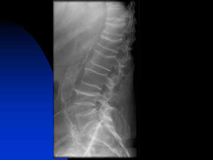 Рентгеновская семиотика остеопороза позвоночного столба Деформационные изменения тел позвонков ТАКИМ ОБРАЗОМ: n n n 1. Зависимость характера, глубины и распространенности деформационных изменений от степени снижения минеральной плотности костной ткани и локализации деформированного позвонка в позвоночном столбе. 2. Отсутствие увеличения рентгеновской плотности тел в результате деформации, сохранение однородности костной структуры. 3. Отсутствие увеличения сагиттального размера тела позвонка.