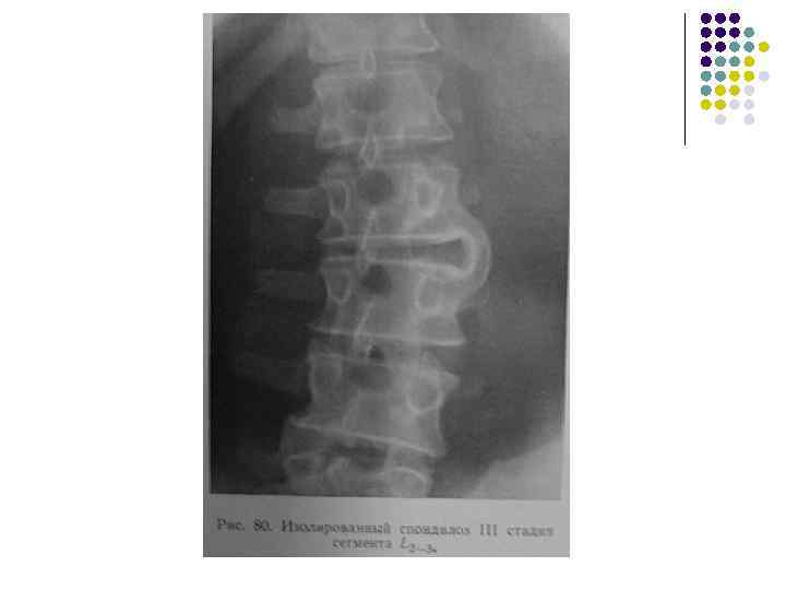 Артроз дугоотростчатых суставов из-за перегрузки. В н/поясничных позвонках может развиваться спондилолистез, подвывих в дугоотростчатых суставах, неоартроз (суставной отросток и ножка дуги) Гипер- или гипо- мобильность – увеличение амплитуды нормальных движений (при функциональных пробах)