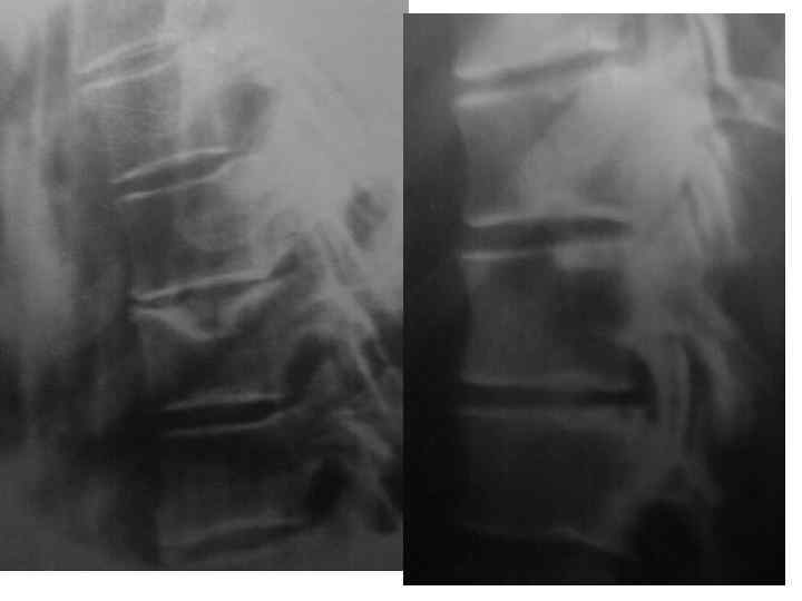Типы нарушения подвижности в позвоночном сегменте l Гипермобильность- передние отделы смежных позвонков при сгибании сближаются больше, чем соседние или высота переднего отдела диска уменьшается более чем на 14. При разгибании обратные соотношения. Это достоверный признак остеохондроза.
