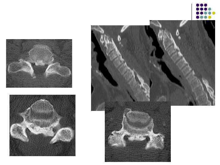 Причины сужения и деформации межпозвонковых отверстий l l l Артроз унко-вертебральных соединений(сужение поперечного размера отверстия) Подвывих суставных отростков при снижении высоты диска, при этом верхний суставный отросток смещается вперед и вверх и упирается в ножку дуги вышележащего позвонка Деформирующий артроз дугоотросчатых суставов