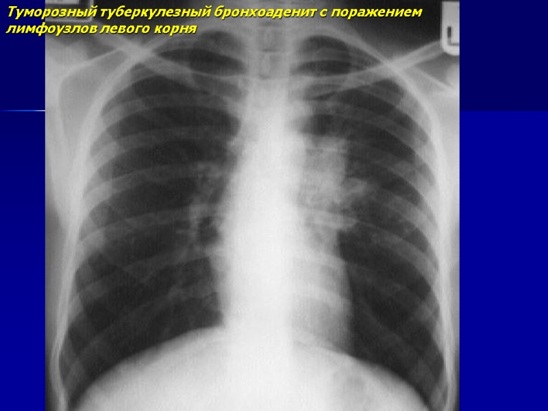 Туморозный туберкулезный бронхоаденит с поражением лимфоузлов левого корня