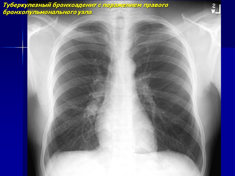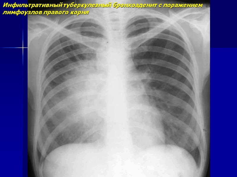 Инфильтративный туберкулезный бронхоаденит с поражением лимфоузлов правого корня