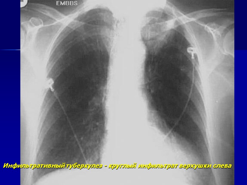 Инфильтративный туберкулез - круглый инфильтрат верхушки слева
