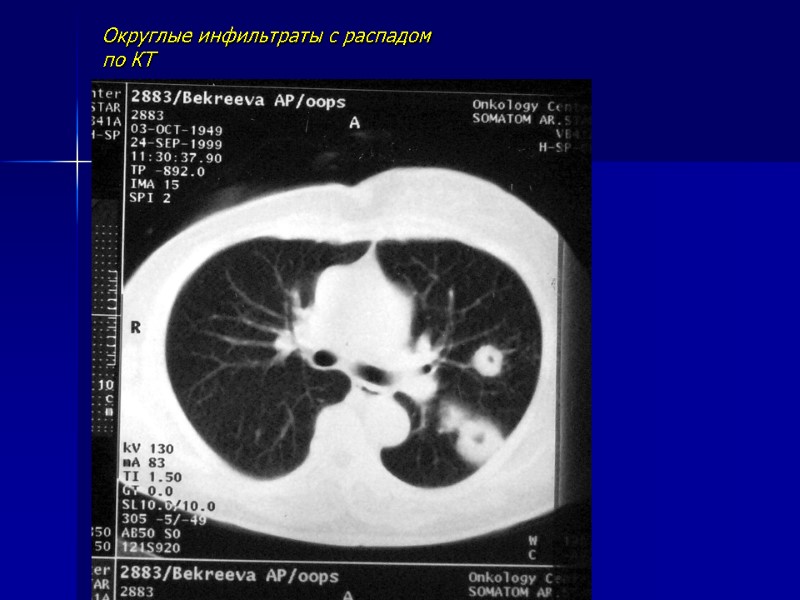 Округлые инфильтраты с распадом по КТ