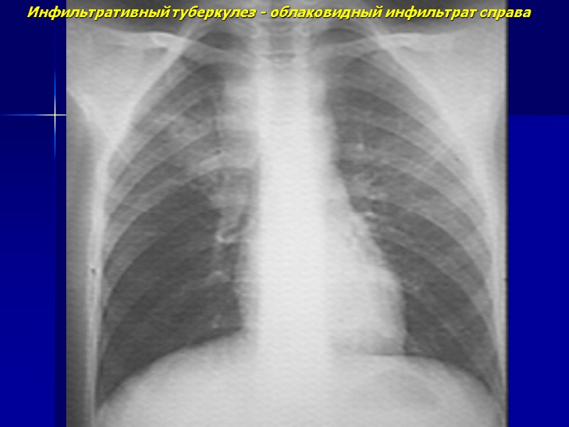Инфильтративный туберкулез - облаковидный инфильтрат справа