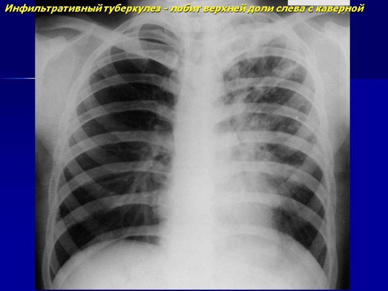 Инфильтративный туберкулез - лобит верхней доли слева с каверной