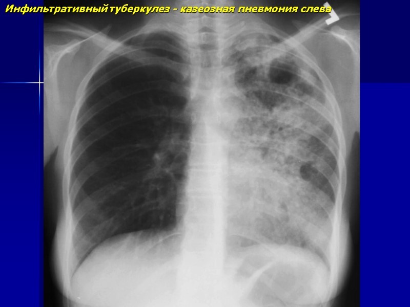 Инфильтративный туберкулез - казеозная пневмония слева