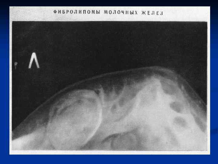 Рак молочных желез n Рентгеновская маммография: патологическое образование с нечеткими контурами, часто с патологическими обызвествлениями