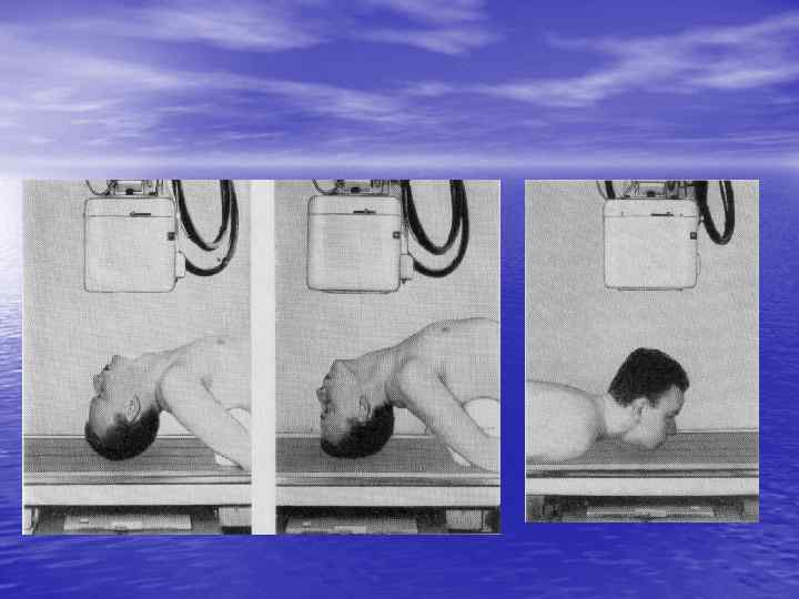 Задняя полуаксиальная проекция Назначение снимка: изучение затылочной кости. Укладка: Больной лежит на спине, руки вдоль туловища, голова симметрична по отношению к средней линии стола. Подбородок прижат к шее. Область затылка прилежит к поверхности стола.