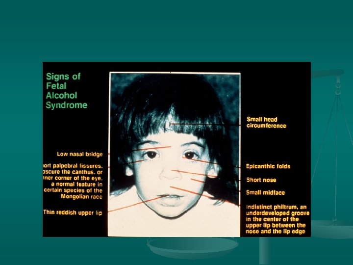 Medical/Neuromotor Difficulties with: • Balance, coordination • Seizures • Growth “FAILURE TO THRIVE” • Hyperactivity (present is about 85% of the children with FAS) • Middle ear infections • Eye problems, e. g. severe nearsightedness • Orthopedic problems • Cardiac anomalies, e. g. heart murmurs, patent ductus arteriosus, ventricular septal defect