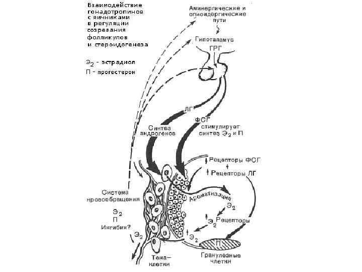 Типы секреции • Гн. РГ – Цирхоральный (1 выброс в 70 -90 мин) • Гонадотропины – Тоническая (отрицательная обратная связь) – развитие фолликула в 1 фазе МЦ – Циклическая (положительная обратная связь, эстрогены) – Пульсирующая (эпизодическая)