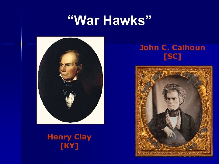 “War Hawks” John C. Calhoun [SC] Henry Clay [KY]