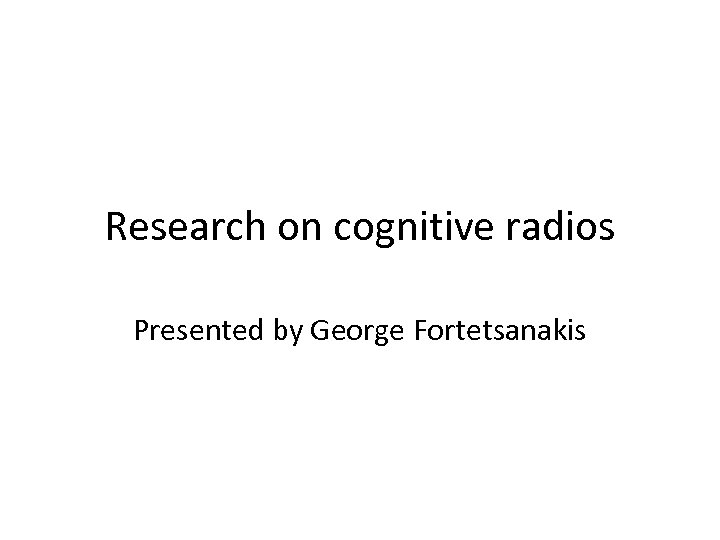 Research on cognitive radios Presented by George Fortetsanakis