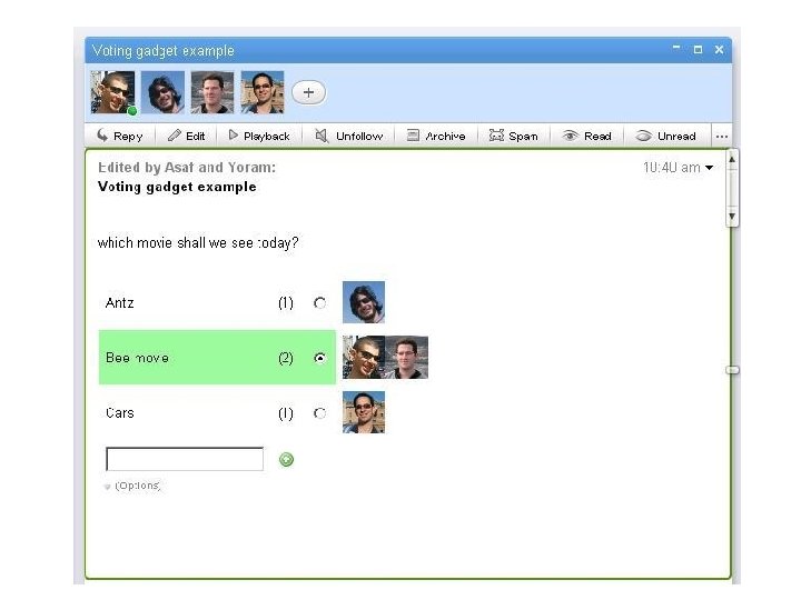 Voting in turns § We allow each voter to change his vote § Only one voter may act at each step § The game ends when there are no objections ü This mechanism is implemented in some on-line voting systems, e. g. in Google Wave