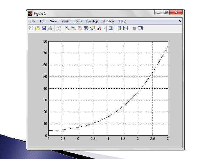 Функция roots(p) Решить алгебраическое уравнение в Matlab можно при помощи встроенной функции roots(p). Она формирует вектор, элементы которого являются корнями полинома с коэффициентами “p” Общий вид: r = roots(p), где p=[p 1 p 2. . . pn pn+1]