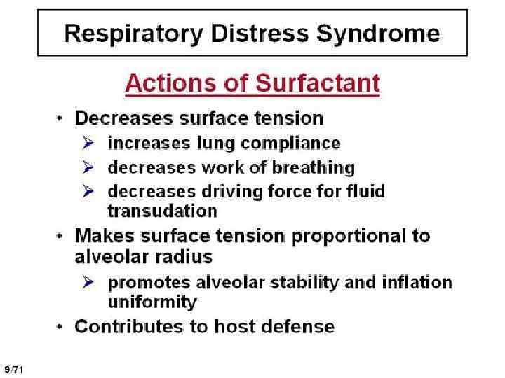 Surfactant -Increasing Factors Corticosteroids n Thyroid hormones, Thyrotropin-Relising Hormon n Prolactin n Estrogens n b-agonists n Chronic fetal stress n Prolonged rupture of the fetal membranes n
