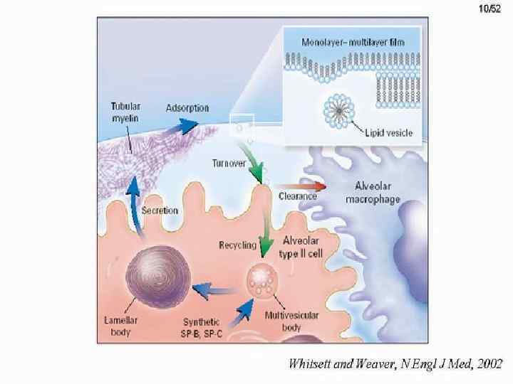 Pathways for surfactant production. There are two major pathways. n n The methyl pathway is functional at 22 -24 weeks’ gestation but is easily inhibited by acidosis and hypoxia, hyper- and hypoglycemia, hypothermia The choline incorporation pathway matures at 32 -34 weeks’ gestation and is more resistant to hypoxia and acidosis.