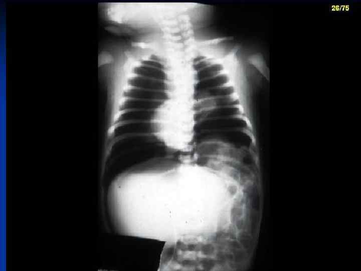 Clinical features: n n n n n appear soon after birth usually < 6 hours cyanosis rapid shallow respiration >60/min expiratory audible grunting apnea Intercostal, and subcostal, and xiphoid retraction flaring of alea nasi breath sounds diminished with crepitating on deep inspiration at lung bases the general sign of hypoxia: hypotonic, hyporeflexic cardiac insufficiency, pattern ductus arteriosus