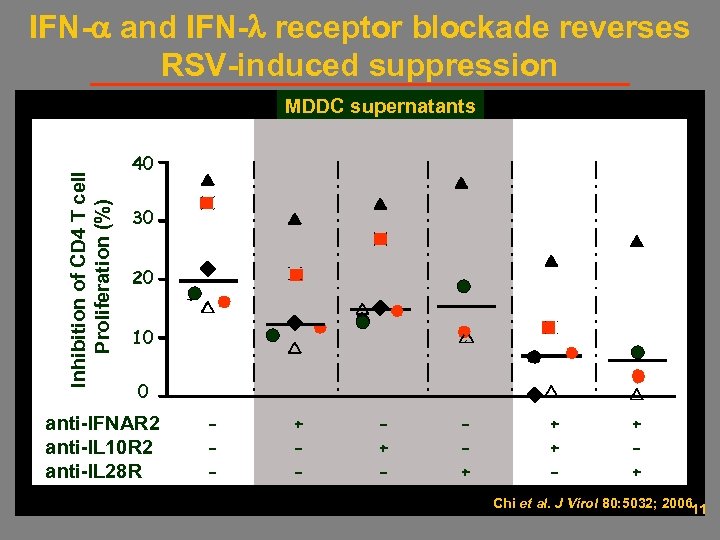 RSV infection induces IFN- 1 gene expression by MDDC (q. RT-PCR) IFN- m. RNA (Ratio to -actin) 24 P P < 0. 0001. 0 0 0 イ P <00. 0001 1 16 4 3 2 1 0 16 donors RSV UVRSV Mock Chi et al. J Virol 80: 5032; 2006 10