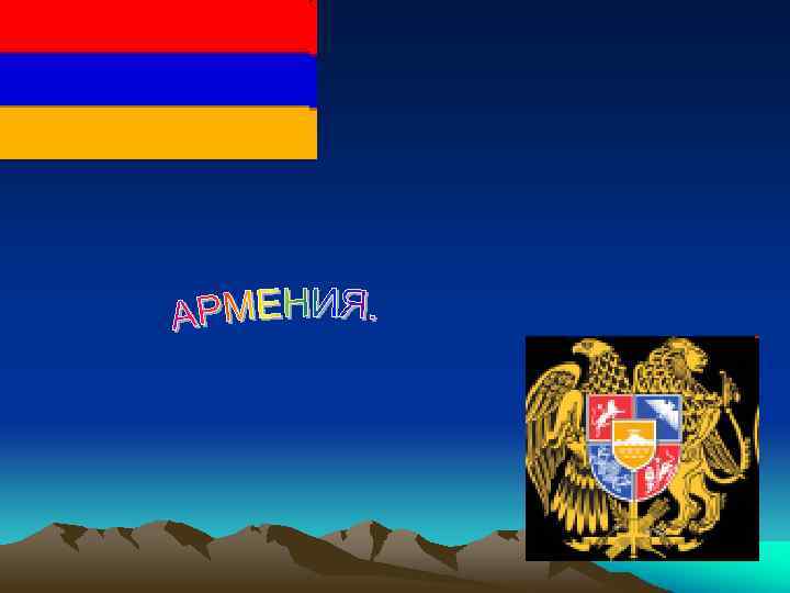 Респу блика Арме ния— государство в южной части Закавказья. Граничит c Азербайджаном на востоке и юго-востоке, Ираном на юге, Нахичеванской Автономной Республикой (эксклав Азербайджана) на юго -западе, Турцией на западе и Грузией на севере. Не имеет выхода к морю. Армения — страна Южного Кавказа, расположена на северозападе Армянского нагорья, называемого исторической Арменией, между Чёрным и Каспийским морями (с 1921 года выходов к морю не имеет). С севера и востока обрамлена хребтами Малого Кавказа. Граничит с Грузией, Азербайджаном, Ираном и Турцией. Несмотря на то, что географически Армения расположена в Азии, она имеет тесные политические и культурные связи с Европой. Армения всегда находилась на перекрёстке путей, соединяющих Европу и Азию, поэтому её рассматривают в качестве трансконтинентального государства.
