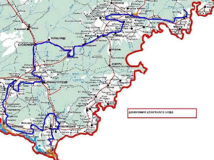 • Первый крестный ход состоялся 10 лет назад. • В настоящее время он проходит по Волжскому, Звениговскому и Моркинскому районам, охватывая более 50 населенных пунктов. • Его продолжительность составляет 300 -350 км, длительность – 14 -16 дней. • На отдельных переходах в нем одновременно принимают участие от 50 до 200 человек.