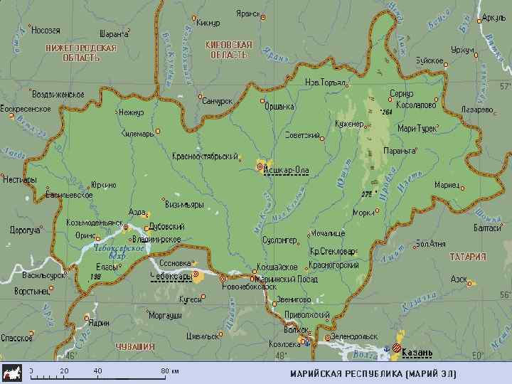Географическое положение региона. Территория региона 23, 4 тыс. кв. км. (0, 14% площади России). Марий Эл расположена на востоке Восточно. Европейской равнины, в среднем течении Волги. Большая часть республики приходится на левобережье Волги. Входит в состав Приволжского федерального округа. Согласно конституции Республики Марий Эл, является республикой (государством) в составе Российской Федерации. На севере и востоке граничит с Кировской областью, на юго-востоке —с Республикой Татарстан, на югозападе —с Республикой Чувашия, на западе — с Нижегородской областью. Столица — город Йошкар-Ола.