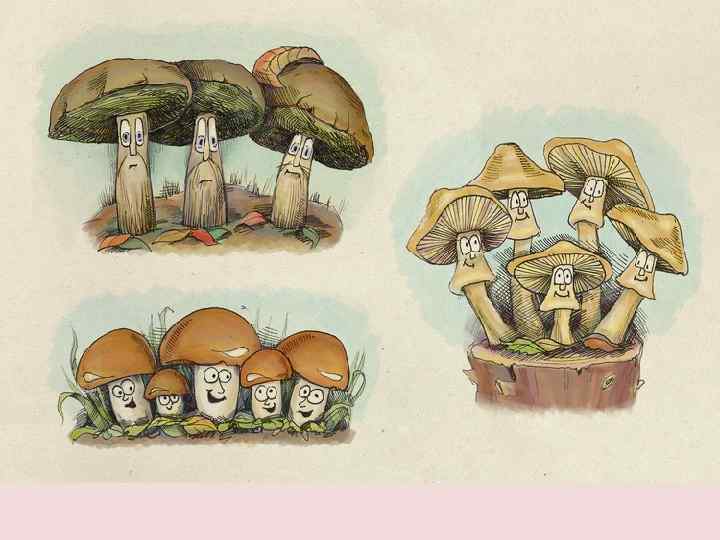 -Не бойтесь, это мобильный телефон звенит, это теперь меня мама к себе зовёт грибы собирать, выходите ко мне не бойтесь, я вас сфотографирую на память, а в корзину вас не соберу. Я к вам ещё приду поиграть, вашего друга учить правильно говорить, чтобы вы с ним играли а своим грибникам скажу, что здесь грибов нет. Девочка сфотографировала друзей на память и ушла , а опята стали играть в новую игру – Прятки –Кричалки, им было весело, особенно маленькому грибу, ведь он нашёл себе друзей! Они договорились ждать свою подругу- девочку и решили прятаться от грибников. Вот и сказочке конец, а кто прочитал её, тот молодец! Старой сказочке конец, новой начало. До новых встреч, дорогие любители сказок! Дорогие дети, а ещё я загадки люблю загадывать! Ну ка отгадай ка! Что за ребятки на пеньках Столпились тесной кучкой? И держат зонтики в руках, Застигнутые тучкой. (опята) 4 5