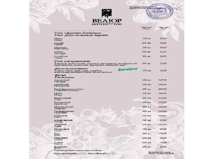 а і яскрава й ресторан Києв йвідоміши принцип ан «Велюр» - на Рестор арта» . Головний ій «Наша К г. Це опозицій і послу ка Групи компан зір ий рівень пр них страв орану - найвищ роботи рест ого - від вишука лютно всь ю. Усе стосується абсо равило унікального мен п их сервісів кладі хні до спеціальн окої ку али в одному за вис іту ми зібр ресторанного св і емоції! найкраще зо ювали незабутн с переповн об кожен раз Ва щ ого 43 вул. Льва Толст Місто Київ, : 00 – 06: 00 столу: Кожний день 10 чи бронювання фоном Довідки за теле 893432 4404477 0442 067 arta. ua : velur@nasha-k E-mail