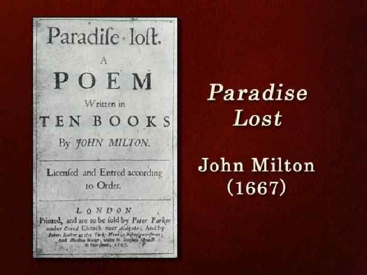 Milton’s reputation q During 17 th century, he was seen as a dangerous rebel q After 1800, he was associated by most people with Bible-reading q Historians associate Milton with humanism, republican revolution, individualism, the rejection of censorship and religious intolerance q Feminists see him as a misogynist, but one who produces a complex view of gender relations between Adam and Eve