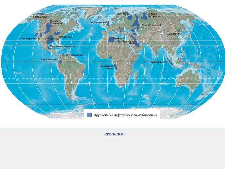Общегеологические запасы нефти оценивались в 270 -300 млрд. т, достоверные составляли 156 млрд т. Ресурсообеспеченности регионов мира этим видом топлива (на 2000 год): Регионы Запасы, млрд т Доля в мировых запасах, % Ресурсообеспеченность, лет Весь мир 156, 7 100 41 Северная Америка 8, 8 5, 5 12, 2 Латинская Америка 14, 6 8, 9 41, 5 Зарубежная Европа 2, 6 1, 69 5, 4 Страны СНГ (в т. ч. Россия) 11, 9 7, 6 20 Ближний и Средний Восток 99, 0 63, 3 88, 1 Остальная Азия 5, 8 3, 8 16, 6 Африка 13, 5 8, 9 33, 2 0, 4 19, 3 Австралия и Океания 0, 6