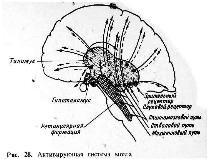 Функции ретикулярной формации • Оказывает облегчающее или тормозящее влияние на сгибательные и разгибательные рефлексы, рефлексы поддержания позы, фазическую двигательную активность. • Регулирует эндокринные и висцеральные функции внутренних органов. • Оказывает диффузное неспецифическое, нисходящее и восходящее влияние на другие мозговые структуры • Выполняет функции восходящей активирующей системы мозга, • Оказывает влияние на врожденное и эмоциональное поведение. • Важная роль при возникновении, поддержании и изменении бодрствования, внимания, ориентировочных рефлексов. • Играет важную роль в процессах обучения, учавствует в процессе запоминания • Контролирует состояние сна и бодрствования • Мышечный (фазный и тонический) контроль
