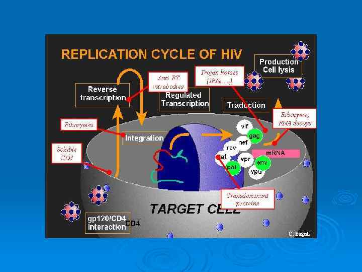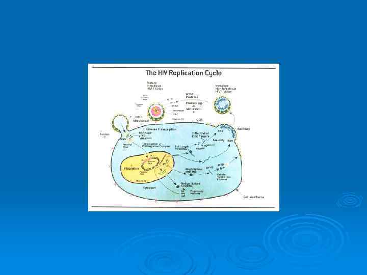 Некоторые особенности патогенеза Ø Ø Ø СD 4 - главная молекулярная мишень для ВИЧ - связь с gp 120 -- Т-лимфоциты обеспечиваю репликацию вируса на 90%. CD 4 40 % МФ, Nk, дендритные клетки и некотрые Влф (в культуре клеток CD 4 - ВИЧ репродуцируютсярастут !! Могут взаимодействовать с маннозным рецептором МФ и дендритных клеток и галактозилцерамидом нейроглии Чтобы попасть в клетку вирусу нужен gp 41 cуперкуапсида --попадание в клетку за счет слияния мембран , связь с F белком мембран (может быть блокирована хемокинами
