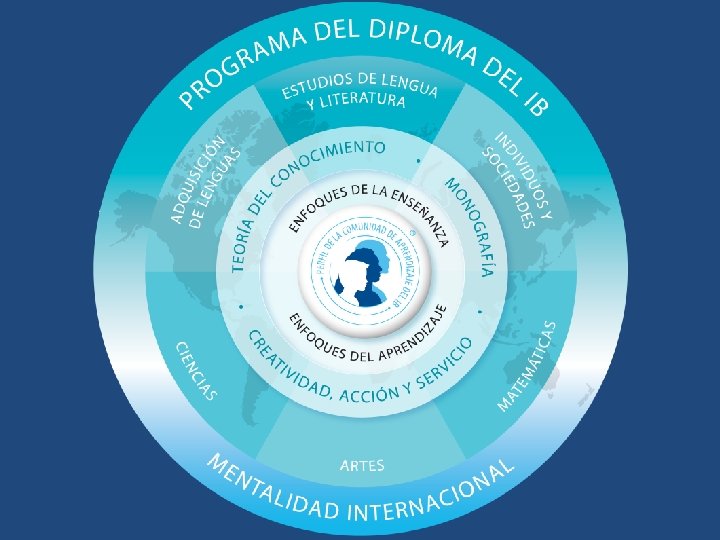 OBJETIVOS DEL DIPLOMA • Desarrollar la capacidad de plantear interrogantes complejos • Construir activamente la experiencia cognitiva • Adquirir conciencia crítica • Desarrollar la creatividad y el pensamiento creativo • Respetar las distintas opiniones • Aprender a aprender. Fomentar el aprendizaje autónomo • Desarrollar una identidad personal y cultural • Desarrollar la capacidad de comprender a personas de otros países y culturas, y comunicarse con ellas