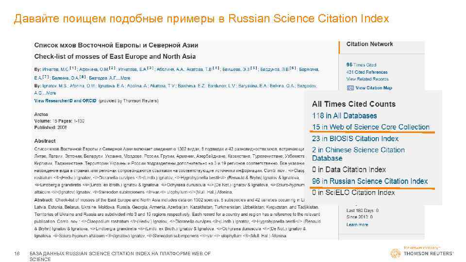 Давайте поищем подобные примеры в Russian Science Citation Index 18 БАЗА ДАННЫХ RUSSIAN SCIENCE CITATION INDEX НА ПЛАТФОРМЕ WEB OF SCIENCE