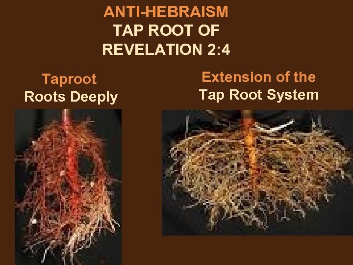 ANTI-HEBRAISM TAP ROOT OF REVELATION 2: 4 Taproot Roots Deeply Extension of the Tap Root System