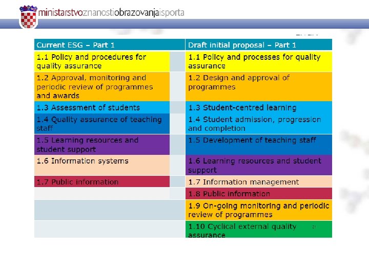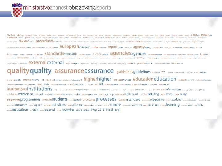 Revizija Europskih standarda i smjernica za osiguravanje kvalitete u visokom obrazovanju (ESG) Završna konferencija projekta hrvatske stručne skupine za Bolonjski proces 5. prosinca 2013. Ivana Krznar, MZOS