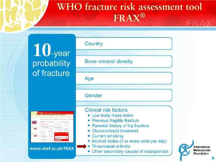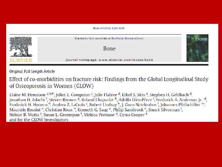 РА как самостоятельный фактор риска переломов • Мультифакториальная природа хрупкости при РА: – прием ГК – снижение МПК – хроническое цитокиновое воспаление – снижение физической активности – увеличение риска падений из-за скованности • Очевидная связь длительность РА с риском переломов (RR=3, 4 при >10 лет или OR=1, 04/год) Susan B. Broy and S. Bobo Tanner, Official Positions for FRAX! Clinical Regarding Rheumatoid Arthritis, 2011