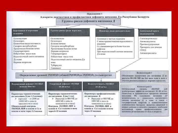 Рекомендуемые уровни потребления кальция в некоторых страна Возрастная группа Суточная доза кальция документ Австралия 51 -70 >70 1300 National Health and Medical Research Counci Канада > 1200 Osteoporosis Canada Корея ≥ 700 Korean Nutrition Society Англия ≥ 700 Department of Healt. Institute of Medicine США > ≥ 1200 Department of Healt. Institute of Medicine ВОЗ Для постменопаузальных 1300 WHO