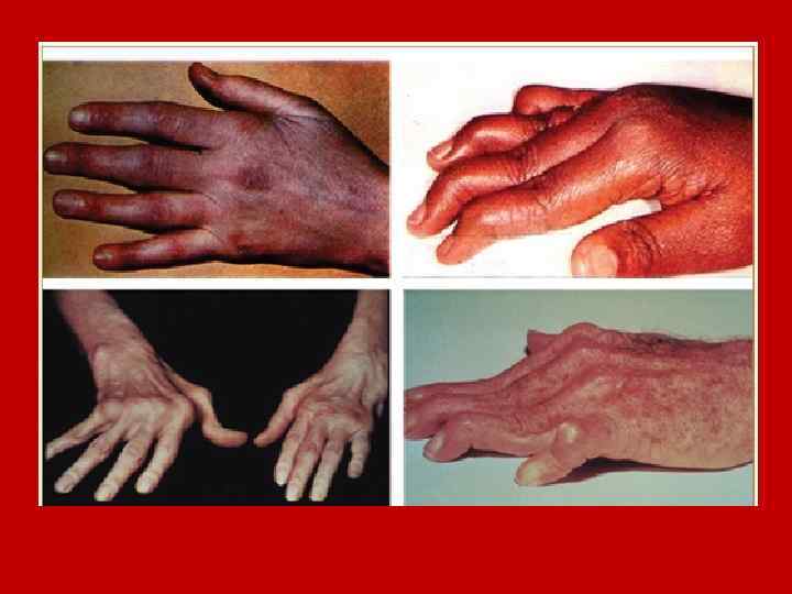 Локальный околосуставной остеопороз – рентгенологический признак РА • • • Наиболее характерно для РА образование эрозий и узур (дефектов костной ткани) на суставной поверхности в результате разрушения субхондральной кости грануляционной соединительной тканью — паннусом. В первую очередь образуются краевые поверхностные узуры, так как паннус начинает разрушать кость с краев суставной поверхности. Узуры при РА имеют нечеткие края. Вследствие узурации и остеопороза суставные поверхности выглядят неровными, изрытыми, нечеткими, что создает характерную рентгенологическую картину. .
