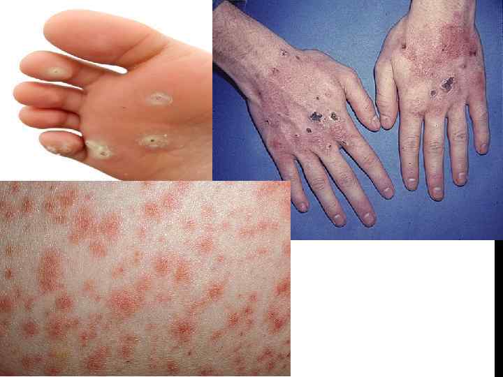 II. ПОРАЖЕНИЕ КОЖИ. Поражение кожи при РА проявляется нарушениями трофики (сухость и истончение кожных покровов), подкожными кровоизлияния и мелкоочаговым некрозом вследствие развивающегося васкулита. Характерны ладонные и подошвенные капилляриты, инфаркты кожи в области ногтевых пластинок (дигитальный артериит), геморрагические проявления в области голеней, livedo reticularis. Вазомоторные нарушения, проявляющиеся снижением температуры и цианозом кожи кистей и стоп, обнаруживают у 40— 70% больных с РА. Нередко развиваются вазомоторные кризы по типу синдрома Рейно. 1) Васкулиты в виде пурпуры (группы коричневых пятнышек на ногтевых ложах, ногтевых валиках и подушечках пальцев), кожных высыпаний, язв голеней. 2) Утолщение и гипотрофия кожи. журнал «Научно – практическая ревматология» и «Современная ревматол