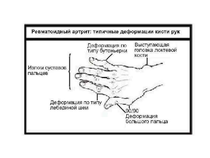 Суставной синдром • Характер поражения суставов: чаще симметричные, деформирующий артрит • Интенсивность болевого синдрома: наибольшая во вторую половину ночи и утром, к вечеру уменьшается • Утренняя скованность (от 20 мин до целого дня)